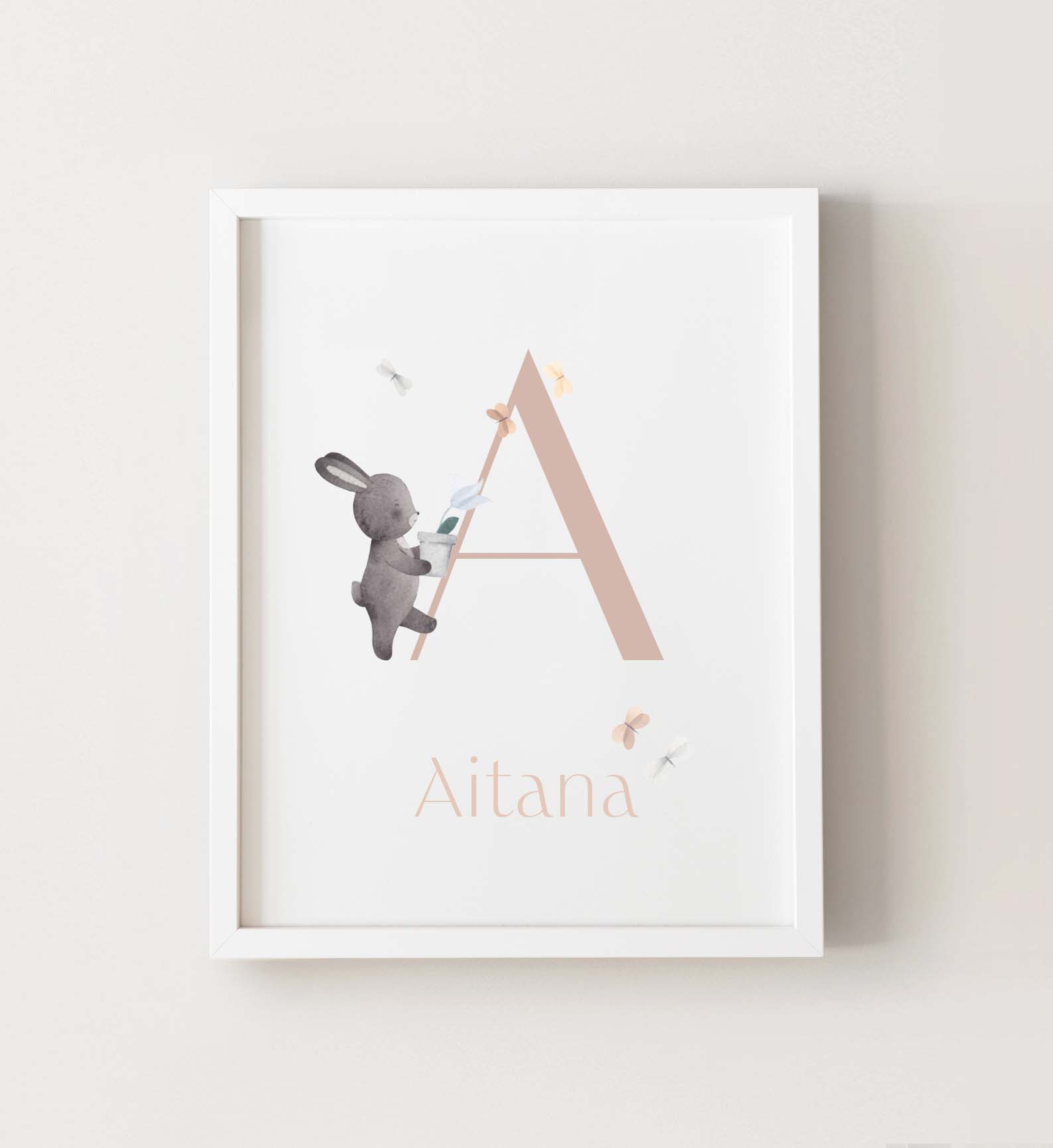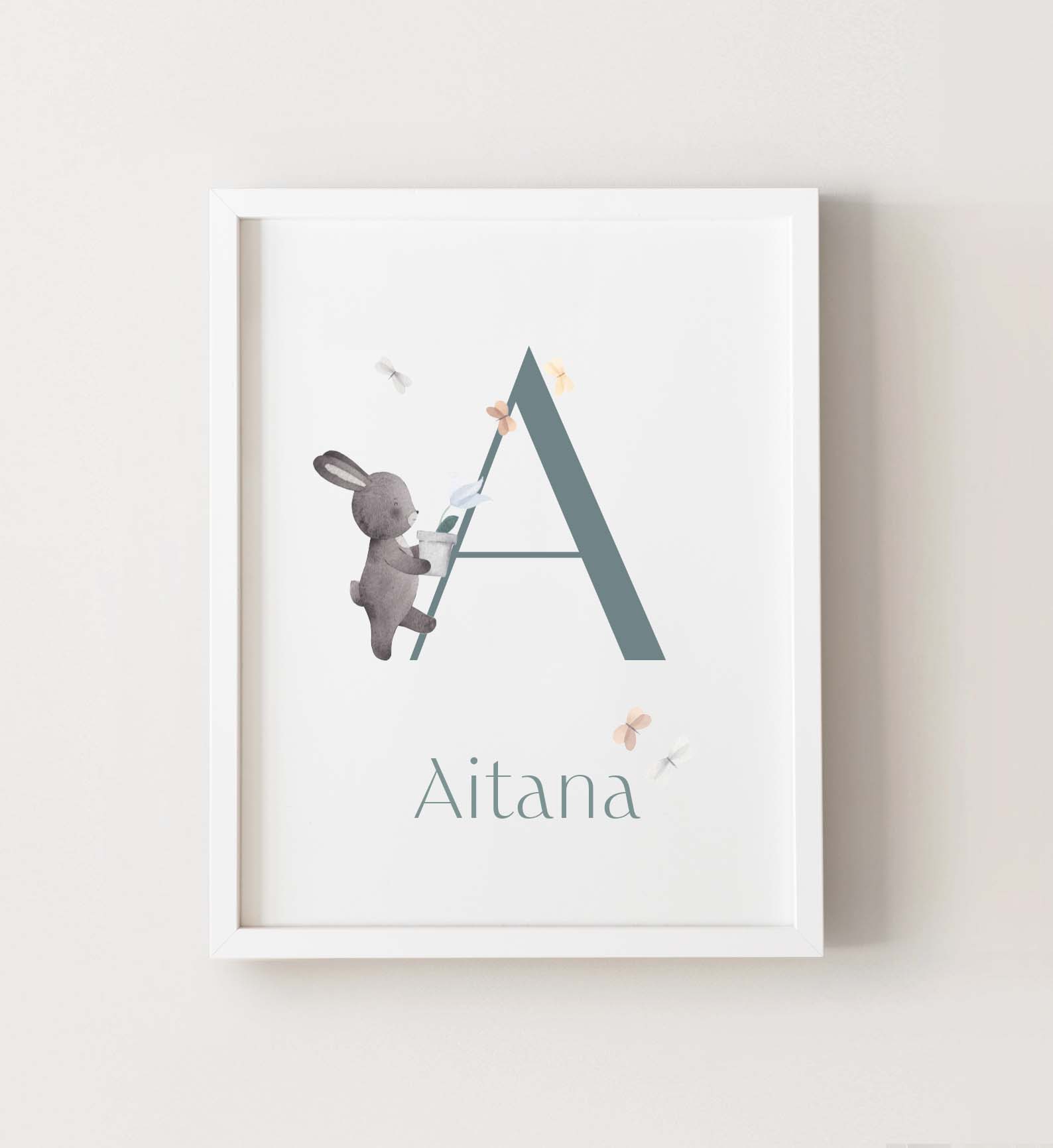 Lámina personalizada con el nombre del bebé y, si lo deseas, sus datos de nacimiento. Un producto original y único para decorar su habitación.